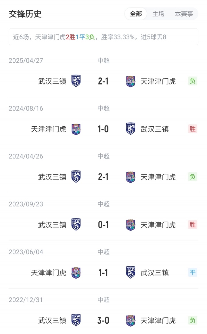 【近期交锋历史】