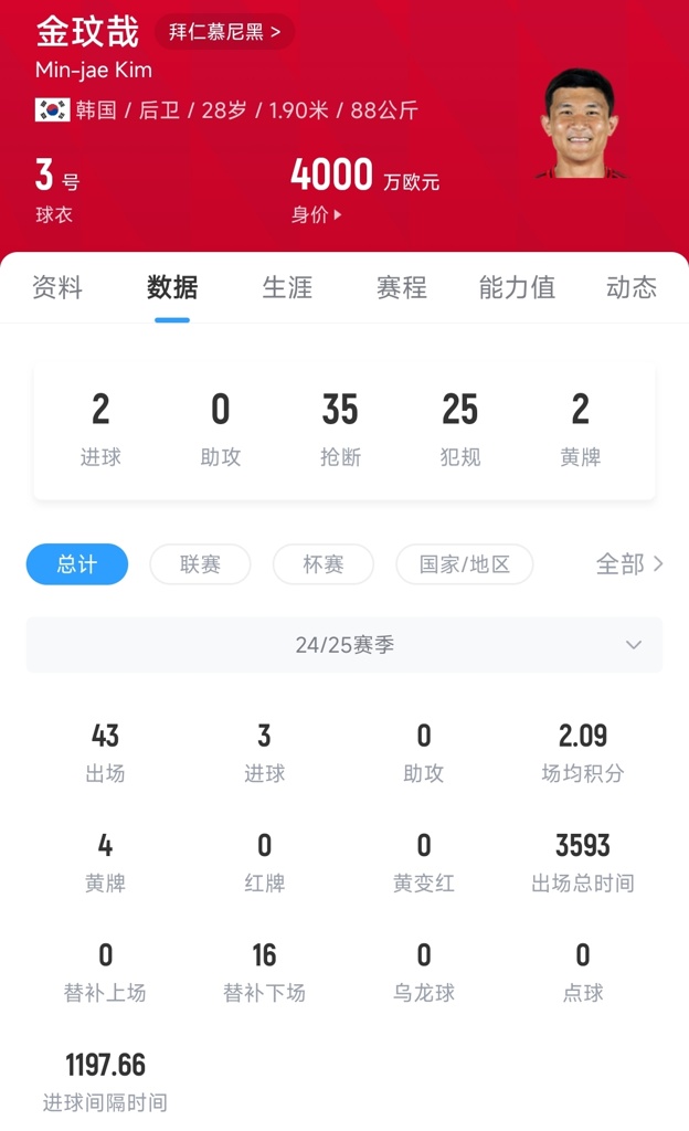 如果金玟哉转会,拜仁希望能收回两年前花在他身上的5000万欧元转会费,据报道AC米兰和沙特联球队利雅得胜利也对金玟哉感兴趣,目前金玟哉在拜仁的年薪为1200万欧元,这份合同将在2028年到期。